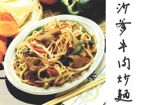 beef, strings of carrots, bean sprouts, julienned green peppers and